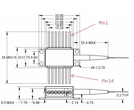 - Параметры волокна - многомодовое 0.15 NA, 105 мкм