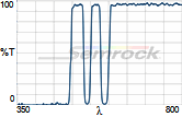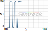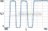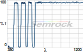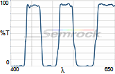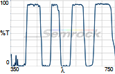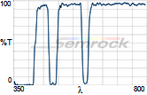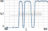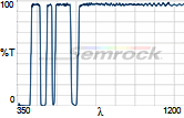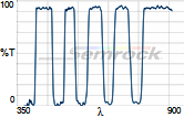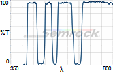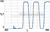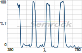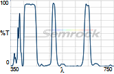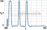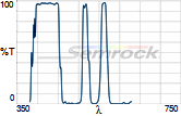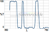 Коэффициент пропускания, % | Tср>93% 414 - 450 нм Tср>93% 499.5 - 530 нм Tср>93% 580 - 611 нм Tср>93% 659.5 - 800 нм |