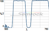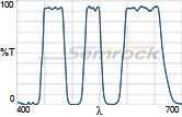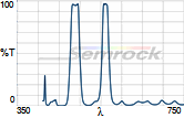 Коэффициент пропускания, % | Tср>90% 414-450 нм Tср>90% 505-528 нм Tср>9% 584-645 нм |