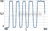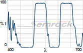 Коэффициент пропускания, % | Tср>90% 420 – 460 нм Tср>90% 510 – 531 нм Tср>90% 589.5 – 623.5 нм Tср>90% 677 – 711.5 нм Tср>90% 768.5 – 849.5 нм |