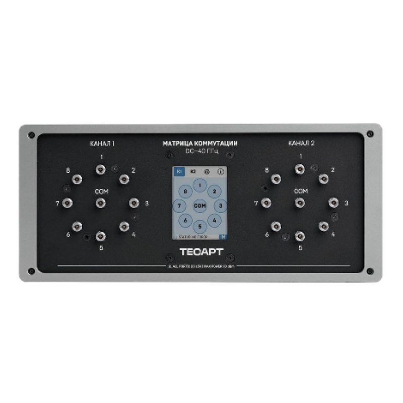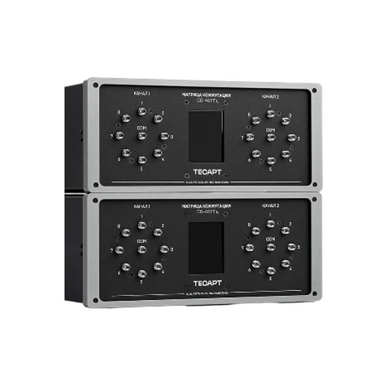• Матрица коммутации позволяет проводить автоматизированные измерения, переключая ВЧ тракты между средствами измерения и испытуемым устройством. Состоят из различного количества СВЧ переключателей, объединенных в маршрутизированную систему.