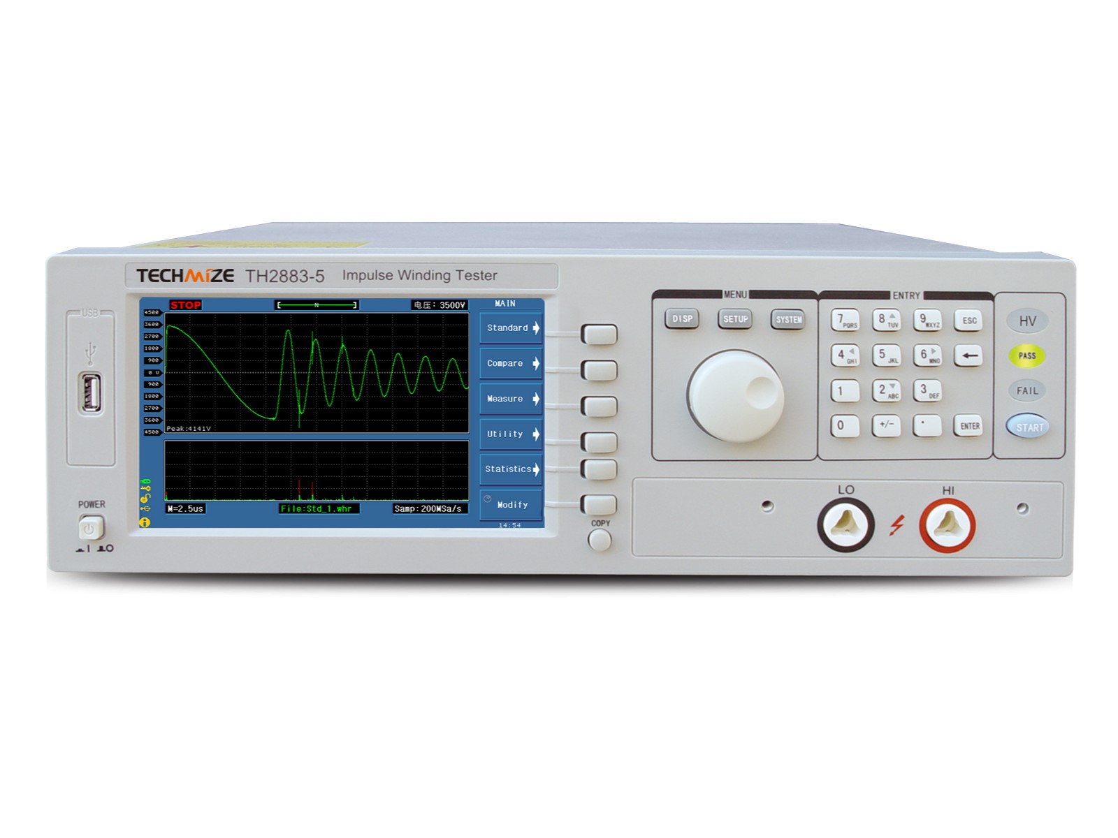 Серия TH2883 — это новые импульсные тестеры обмоток с диапазоном напряжений от 30 В до 10 кВ и поддержкой до 8 каналов. Устройства оснащены 32-битным процессором, SMD-технологией и 7-дюймовым TFT экраном на 65 тыс. цветов для удобства использования. Минимальное импульсное напряжение составляет 30 В, максимальное — 10 кВ, частота выборки — 200 Мс/с, глубина памяти — 6 кБ.