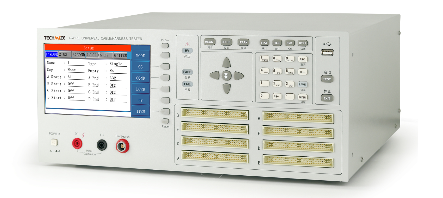 - Режимы тестирования: проводимость, мгновенное обнаружение обрывов и КЗ, испытание высоким напряжением (Hipot), измерение сопротивления изоляции (IR), тестирование компонентов.