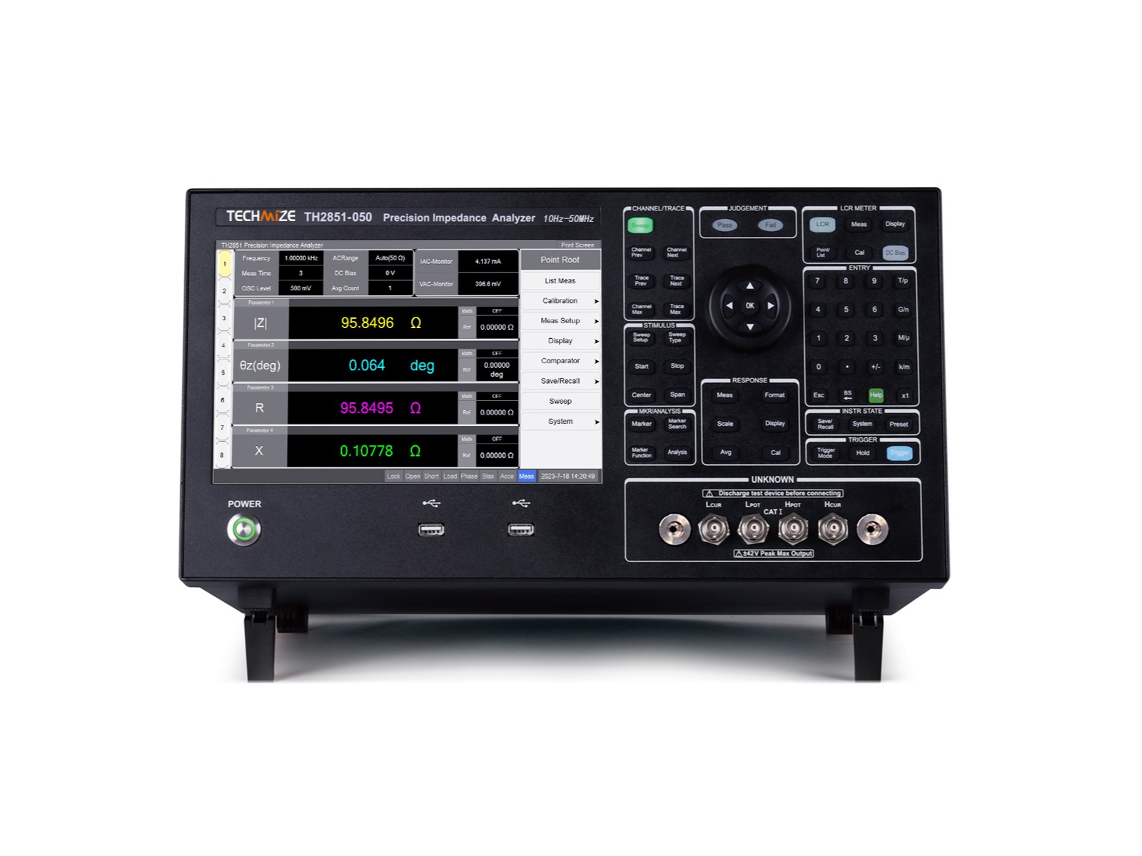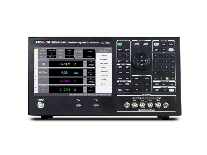 Анализатор импеданса TH2851 компании Techmize имеет пять опций диапазона частот от 10 Гц до 50 МГц позволяют выбрать наиболее подходящую опцию с учётом особенностей решаемых задач. Прибор обеспечивает лучшее в отрасли типовое значение основной погрешности измерений 0,045% в широком диапазоне значений импеданса с использованием встроенного источника смещения по постоянному току до 40 В. Функция анализа эквивалентных схем поддерживает семь различных многопараметрических моделей и позволяет моделировать собственные значения эквивалентных параметров компонентов.