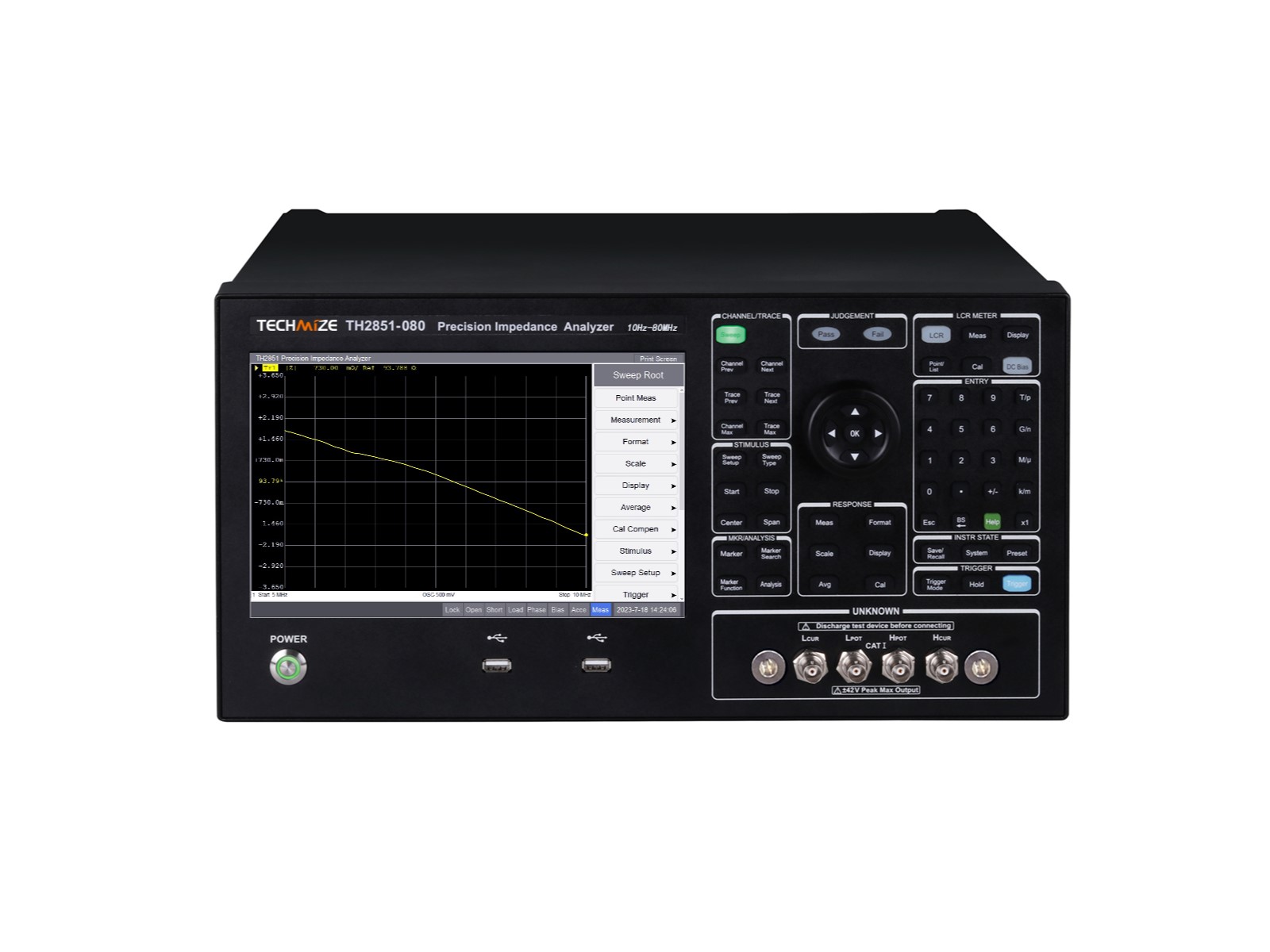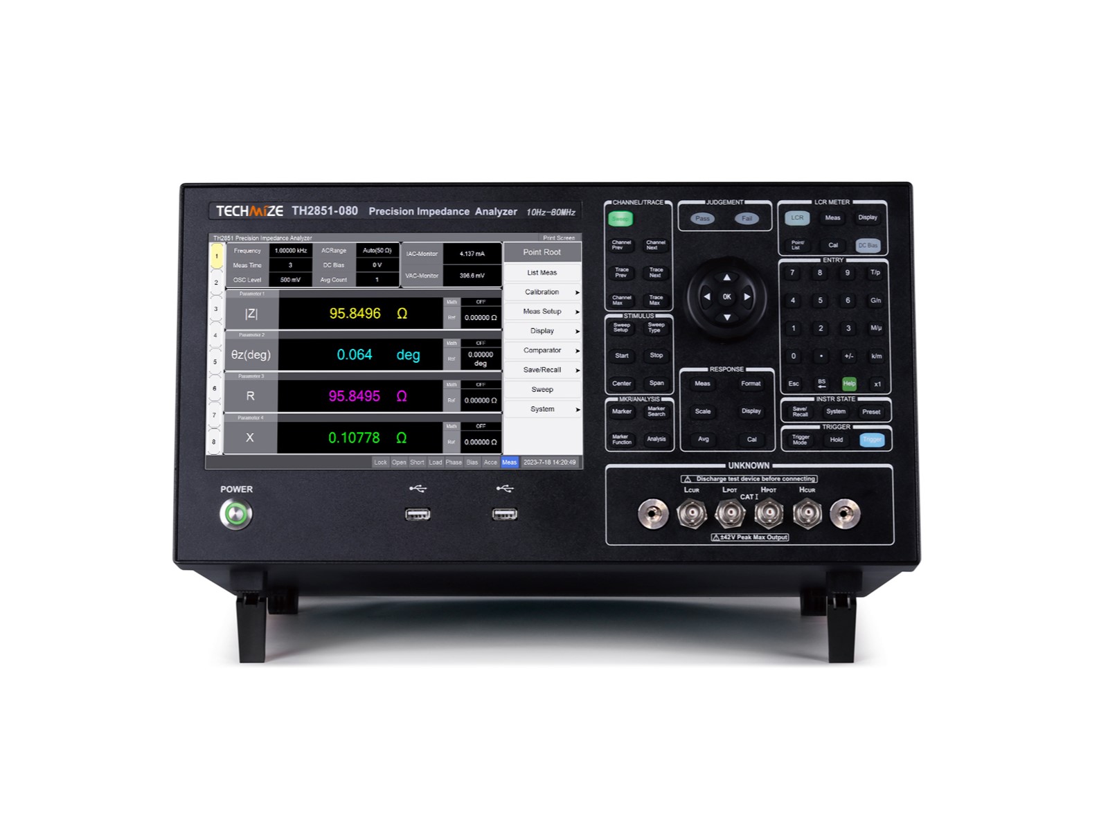 Анализатор импеданса TH2851 компании Techmize имеет пять опций диапазона частот от 10 Гц до 80 МГц позволяют выбрать наиболее подходящую опцию с учётом особенностей решаемых задач. Прибор обеспечивает лучшее в отрасли типовое значение основной погрешности измерений 0,045% в широком диапазоне значений импеданса с использованием встроенного источника смещения по постоянному току до 40 В. Функция анализа эквивалентных схем поддерживает семь различных многопараметрических моделей и позволяет моделировать собственные значения эквивалентных параметров компонентов.