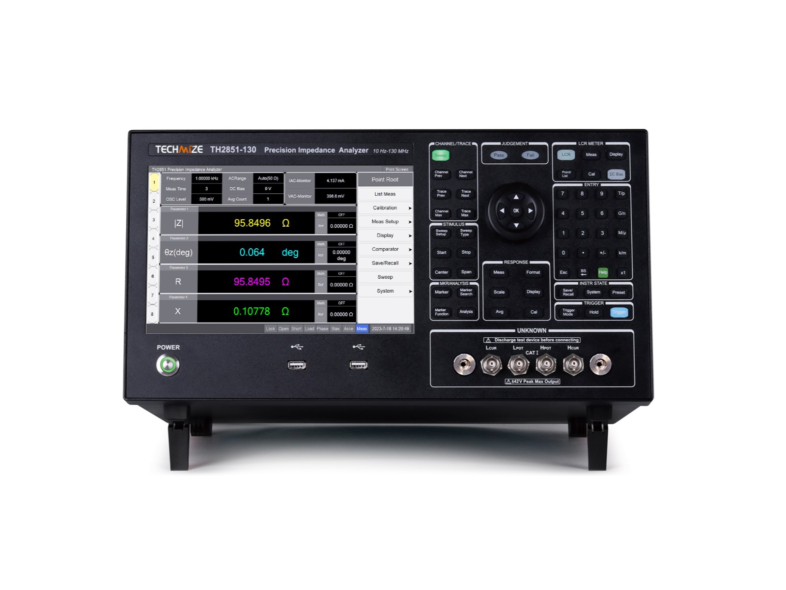 Анализатор импеданса TH2851 компании Techmize имеет пять опций диапазона частот от 10 Гц до 130 МГц позволяют выбрать наиболее подходящую опцию с учётом особенностей решаемых задач. Прибор обеспечивает лучшее в отрасли типовое значение основной погрешности измерений 0,045% в широком диапазоне значений импеданса с использованием встроенного источника смещения по постоянному току до 40 В. Функция анализа эквивалентных схем поддерживает семь различных многопараметрических моделей и позволяет моделировать собственные значения эквивалентных параметров компонентов.