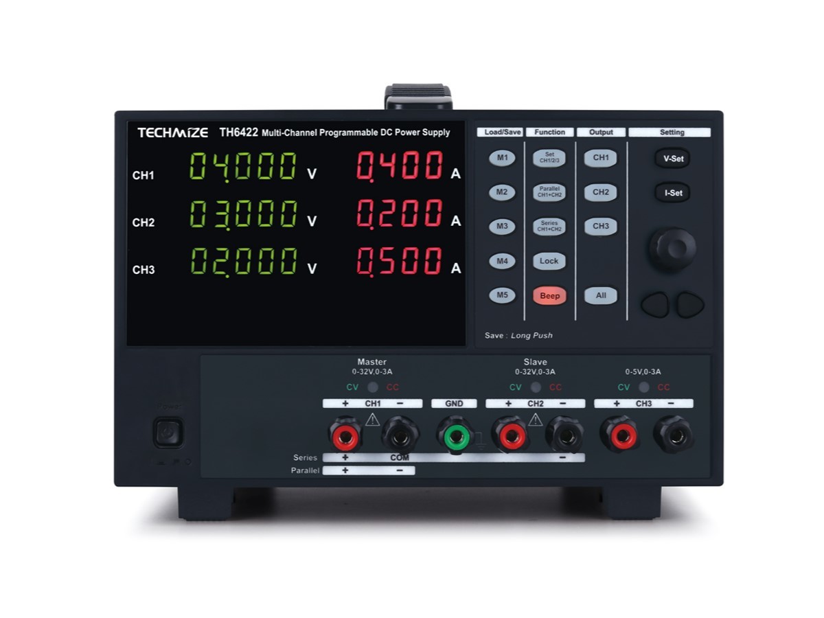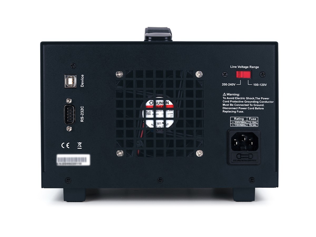 Номинальные характеристики: CH1 – 0-32 В/0-3 A/96 Вт, CH2 – 0-32 В/0-3 A/96 Вт, CH3 – 0-5 В/0-3 A/15 Вт. Автоматическое переключение между режимами CC и CV. Функция последовательного и параллельного соединения каналов 1 и 2. Интерфейсы: RS232, USB DEVICE. Габариты – 215×133×268 мм, вес – 4.7 кг.