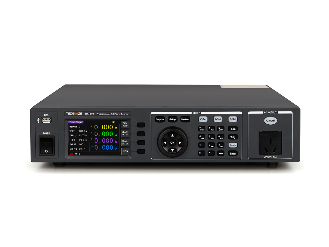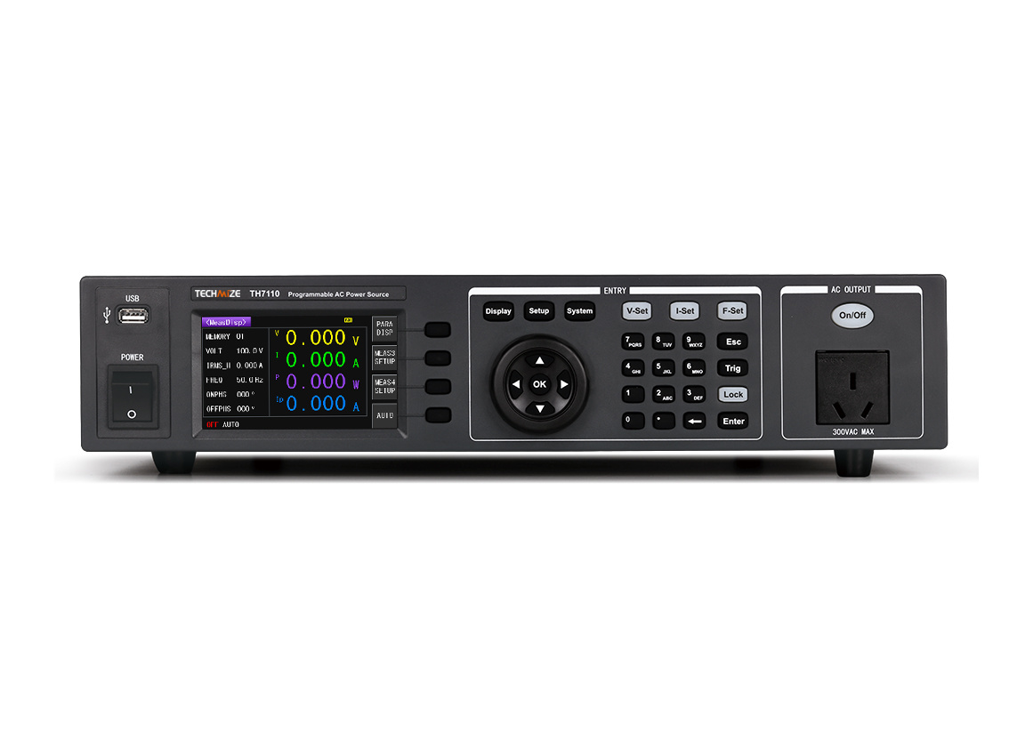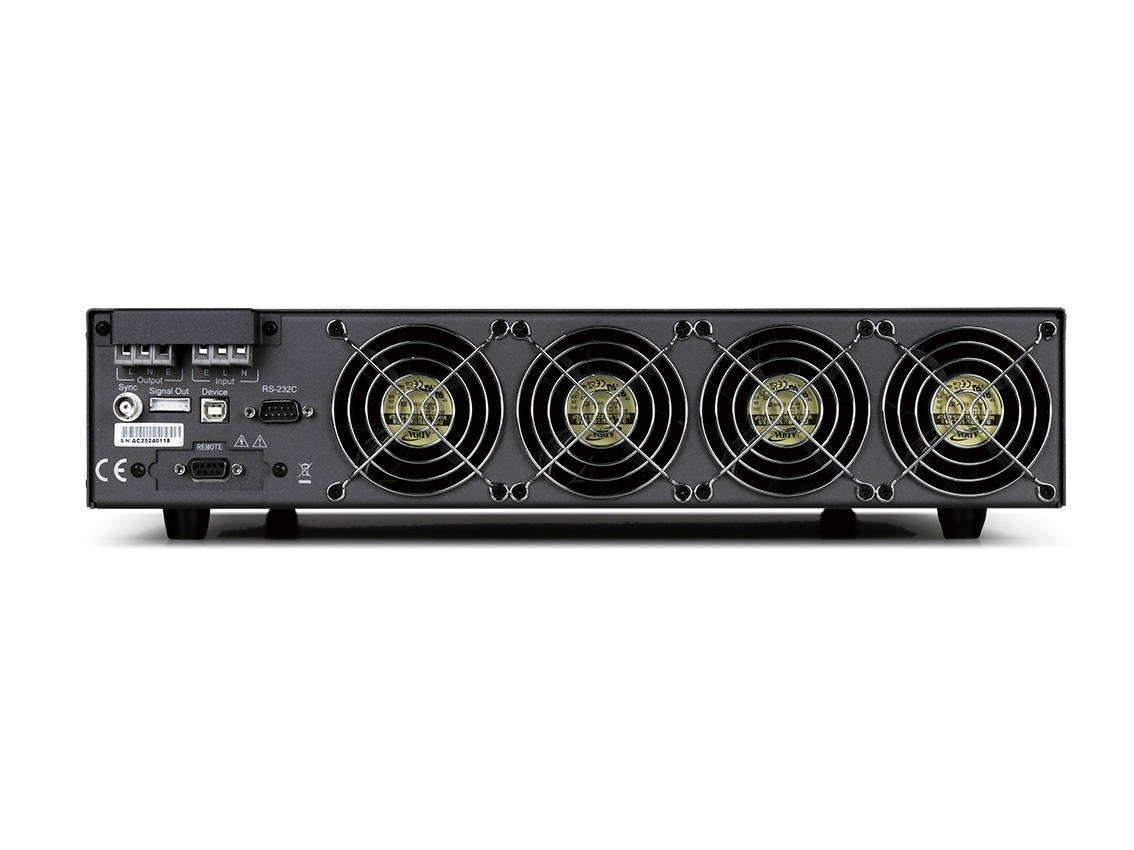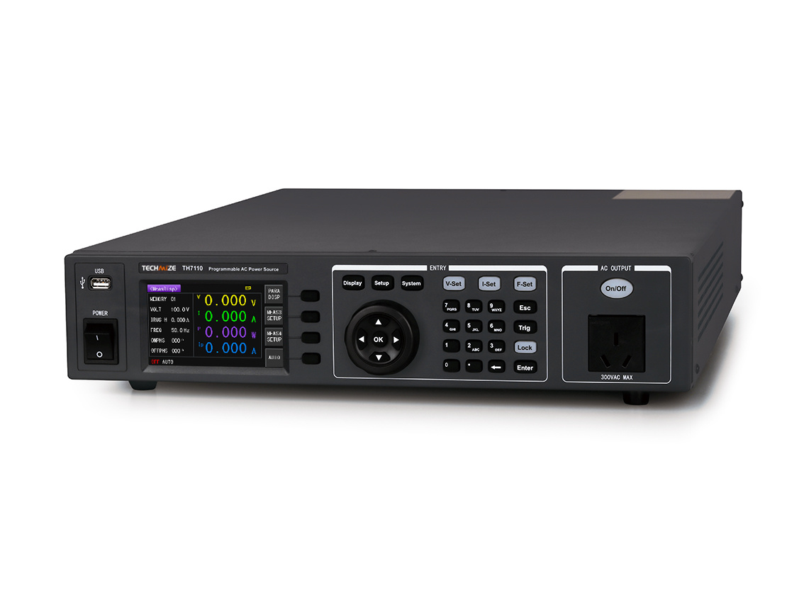 Номинальная мощность 1000 Вт, выходное напряжение 0-300 В, выходная частота 45.0 Гц-500 Гц. Дисплей: 24-битный цветной LCD экран размером 4.3 дюйма с разрешением 480×272. Ручное/программируемое управления параметрами выходного сигнала. Измеряемые параметры: напряжение, ток, ток (пик-пик), мощность, коэффициент мощности, частота. Вместимость памяти: ручной режим - 50 групп; программное управление - 50 групп, 9 шагов на группу. Множественные режимы защиты: HI-A, OVP, LVP, OCP, OPP, OTP. Интерфейс: RS232, USB HOST, USB DEVICE, REMOTE, GPIB (опция).