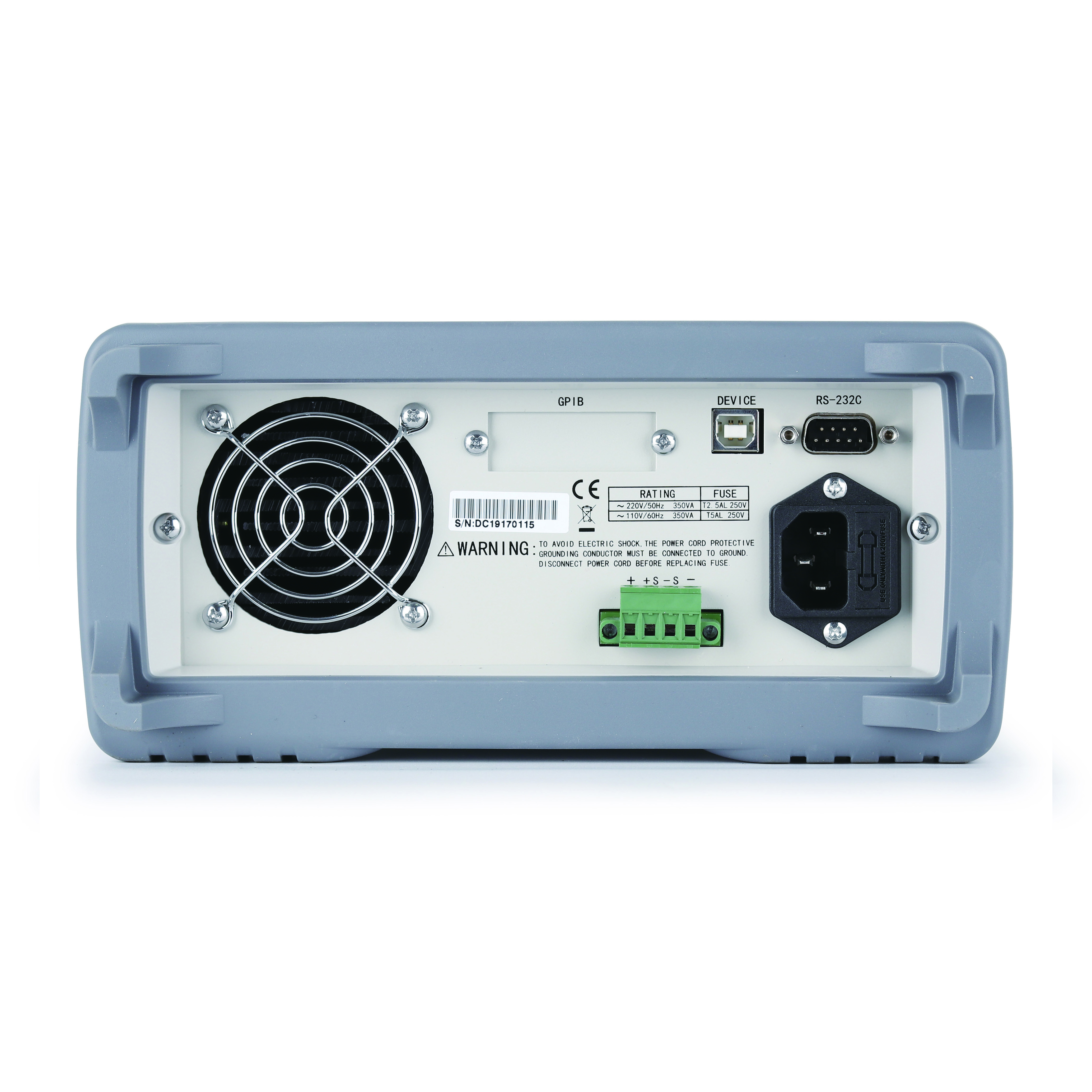 Номинальная мощность: диапазон 1 – 72 В/1,5 А/108 Вт, диапазон 2 – 32 В/3 А/96 Вт. Разрешение 1 мВ/0,1 мА. 4,3-дюймовый ЖК-дисплей, 24 бит, разрешение 480x272. Интерфейс: RS232, USB HOST, USB DEVICE, GPIB (опция). Размер – 236×111×426 мм, вес – 8.1 кг.