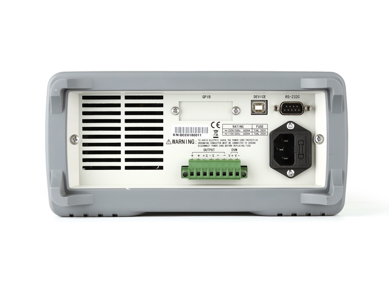 Номинальная мощность: 20 В/30 А/200 Вт. Разрешение 1 мВ/1 мА. Проверка напряжения. 4,3-дюймовый ЖК-дисплей, 24 бит, разрешение 480x272. Интерфейс: RS232, USB HOST, USB DEVICE, GPIB (опция). Размер – 235×111×440 мм, вес – 8.1 кг.
