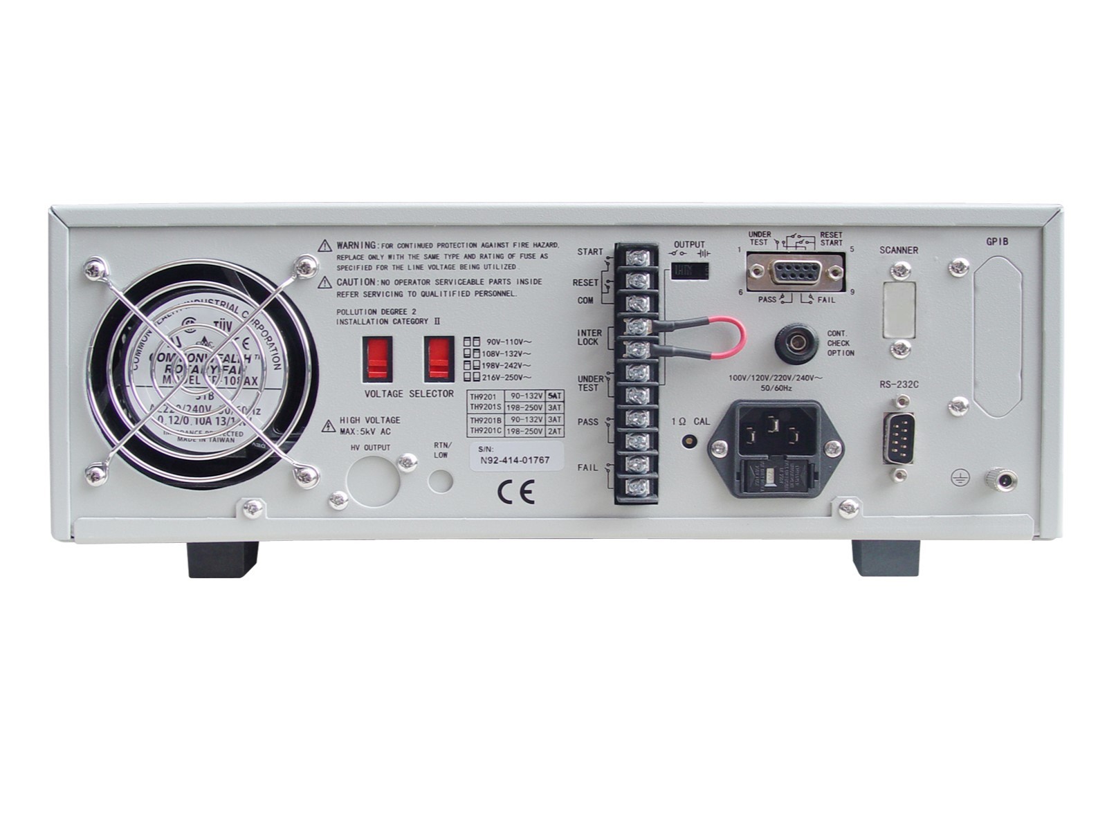 8-канальный сканирующий тестер электрической прочности изоляции на пробой переменным/постоянным напряжением. Графический ЖК-дисплей с разрешением 240х64 точек. Встроенный 8-канальный матричный сканер для удобства использования. Настройка времени нарастания напряжения, времени тестирования и времени падения напряжения в зависимости от нагрузки. Хранение данных: 100 шагов тестирования на группу, всего 50 групп, с общим ограничением в 500 шагов. Функции: быстрое снятие разряда и детектирование токов утечки пробоя изоляции; защита корпуса; оценка тока при испытании постоянным пробивным напряжением; коррекция базового значения тока. Интерфейсы: RS232, USB, HANDLER, REMOTE I/O, SCAN, опционально – GPIB.