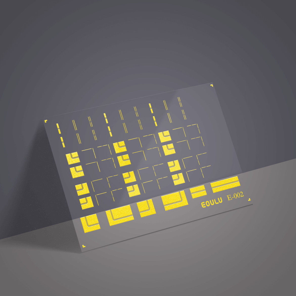 E-002 — калибровочная пластина расширенной универсальности для GSG-пробников, поддерживающая больший шаг зонда (до 400 мкм) и имеющая дополнительные структуры для калибровки при ортогональном расположении пробников. Поддерживаемый частотный диапазон — до 67 ГГц, что делает ее подходящей для большинства СВЧ-приложений.