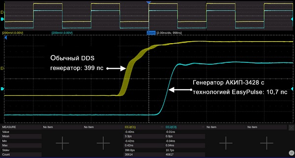- Генерация импульсных сигналов с низким уровнем джиттера и минимальной длительностью импульса 1 нс, фронтом/срез от 1 нс.