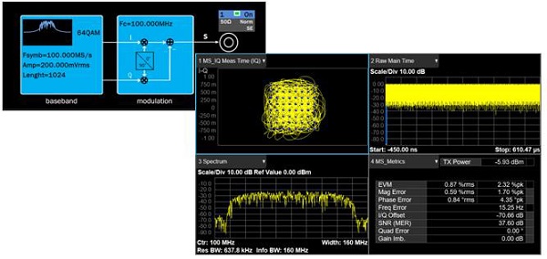 - Опциональный генератор векторных сигналов с максимальной символьной скоростью до 500 Мвыб/с.