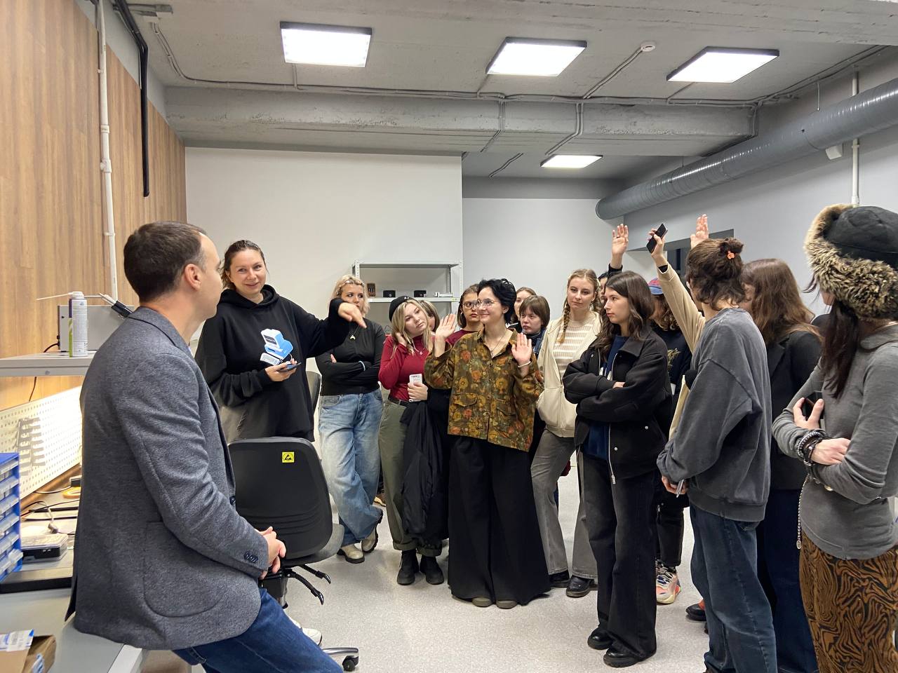 Директор ООО НПК «ТЕСАРТ» Артем Семкин провел экскурсию по производственным помещениям предприятия. Студенты познакомились с процессом создания высокотехнологичной продукции и увидели, как изготавливаются радиопоглощающие материалы, экранированные помещения, измерительные приборы и прецизионные позиционеры.
