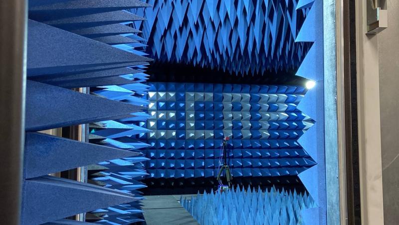 Будущие специалисты также побывали внутри безэховой экранированной камеры — специализированного оборудования, которое создаёт оптимальные условия для проведения испытаний: защищает от внешних радиопомех, снижает отражение сигналов и обеспечивает точное размещение исследуемого устройства относительно измерительных приборов.