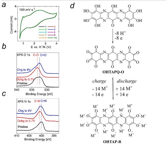 Авторы исследования создали органическое соединение, которое позволит заменить неорганические материалы для производства калий-ионных аккумуляторов. Октагидрокситетраазапентацендион (OHTAPQ) —материал для анода калиевых аккумуляторов с высокой удельной емкостью заряда. Он сочетает в себе высокую производительность и стабильность по количеству циклов зарядки-разрядки.