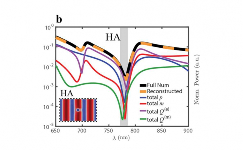 Таким образом, гибридный анаполь в определенном электромагнитном спектре практически «невидим» для падающего излучения. Достигается это за счет уникальной геометрии.
